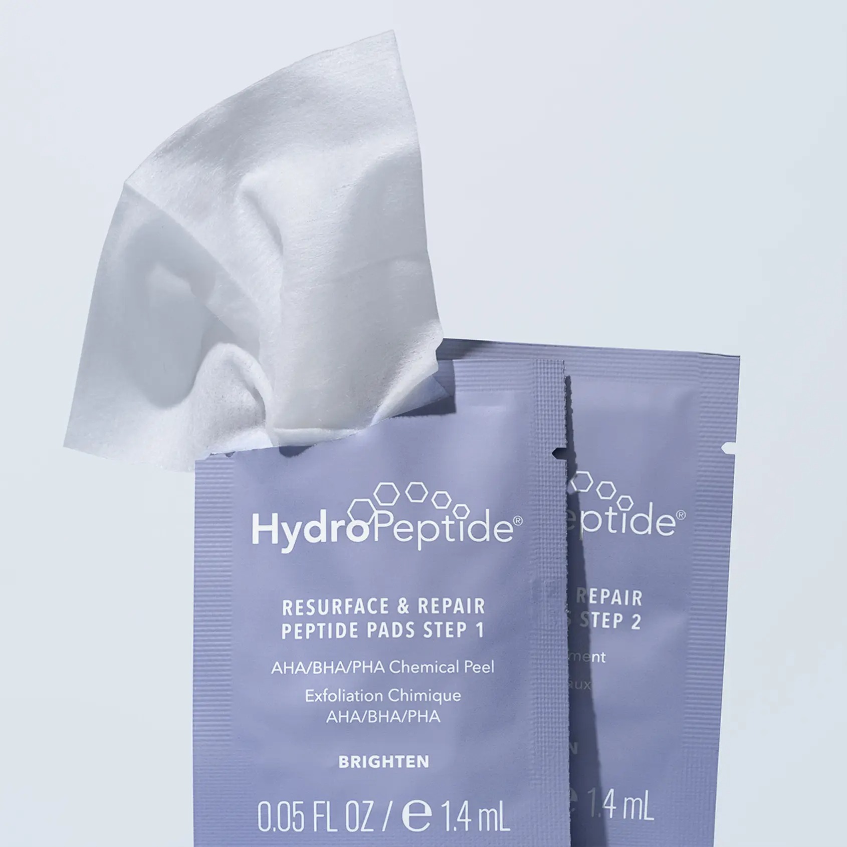 Una experiencia de exfoliación en dos pasos, suave pero altamente efectiva. El Paso 1 es un peeling químico delicado que suaviza la capa externa de la piel y elimina las células muertas, preparando la piel para absorber de manera más eficaz los activos del Paso 2. El Paso 2 es un disco de tratamiento rico en péptidos, diseñado para ayudar a restaurar la función óptima de la barrera cutánea y promover la renovación celular. Estos ingredientes exfoliantes y ricos en péptidos, cuidadosamente equilibrados, trabajan en sinergia para perfeccionar la textura, mejorar la firmeza y revelar una piel radiante y visiblemente revitalizada.